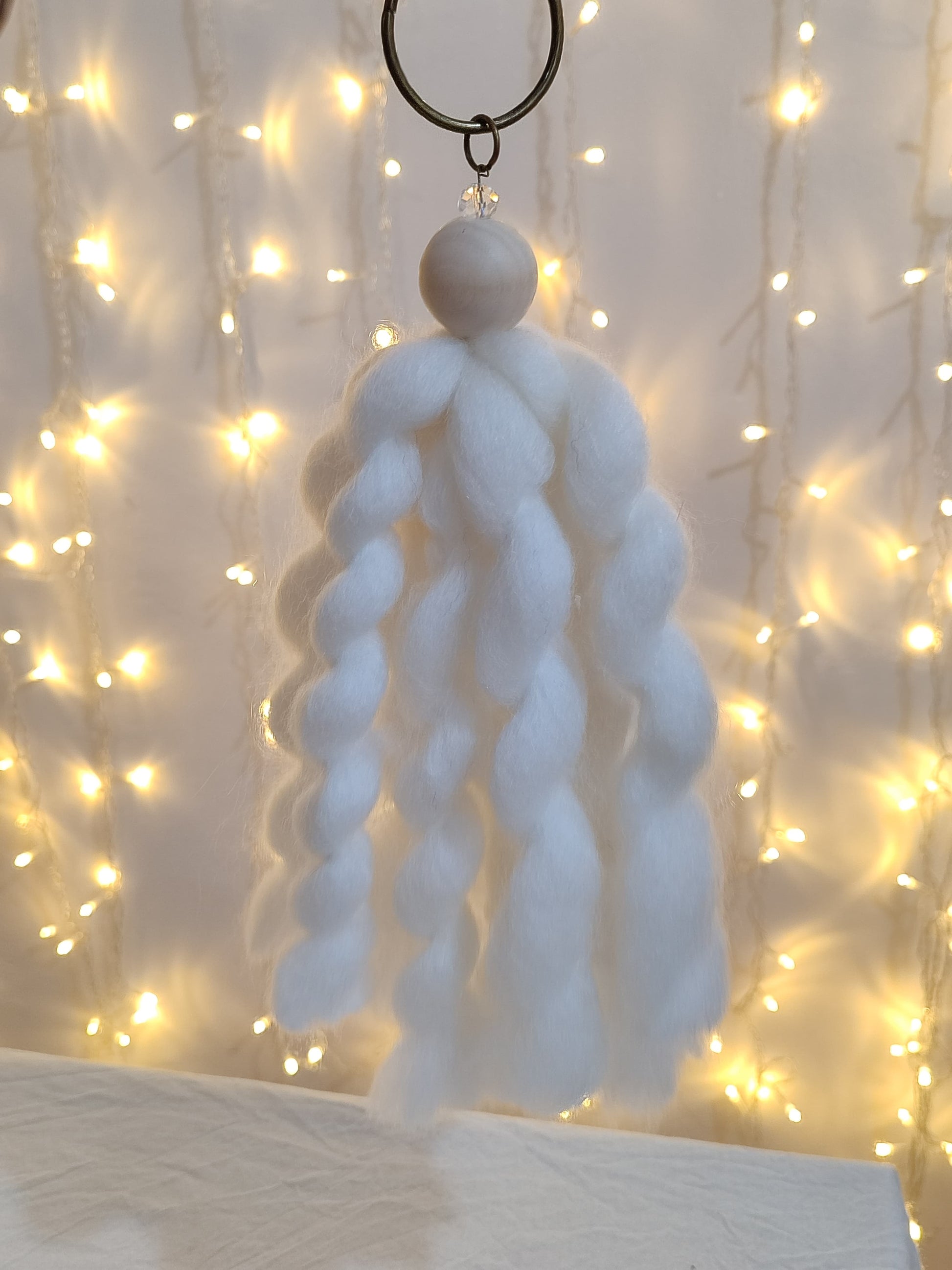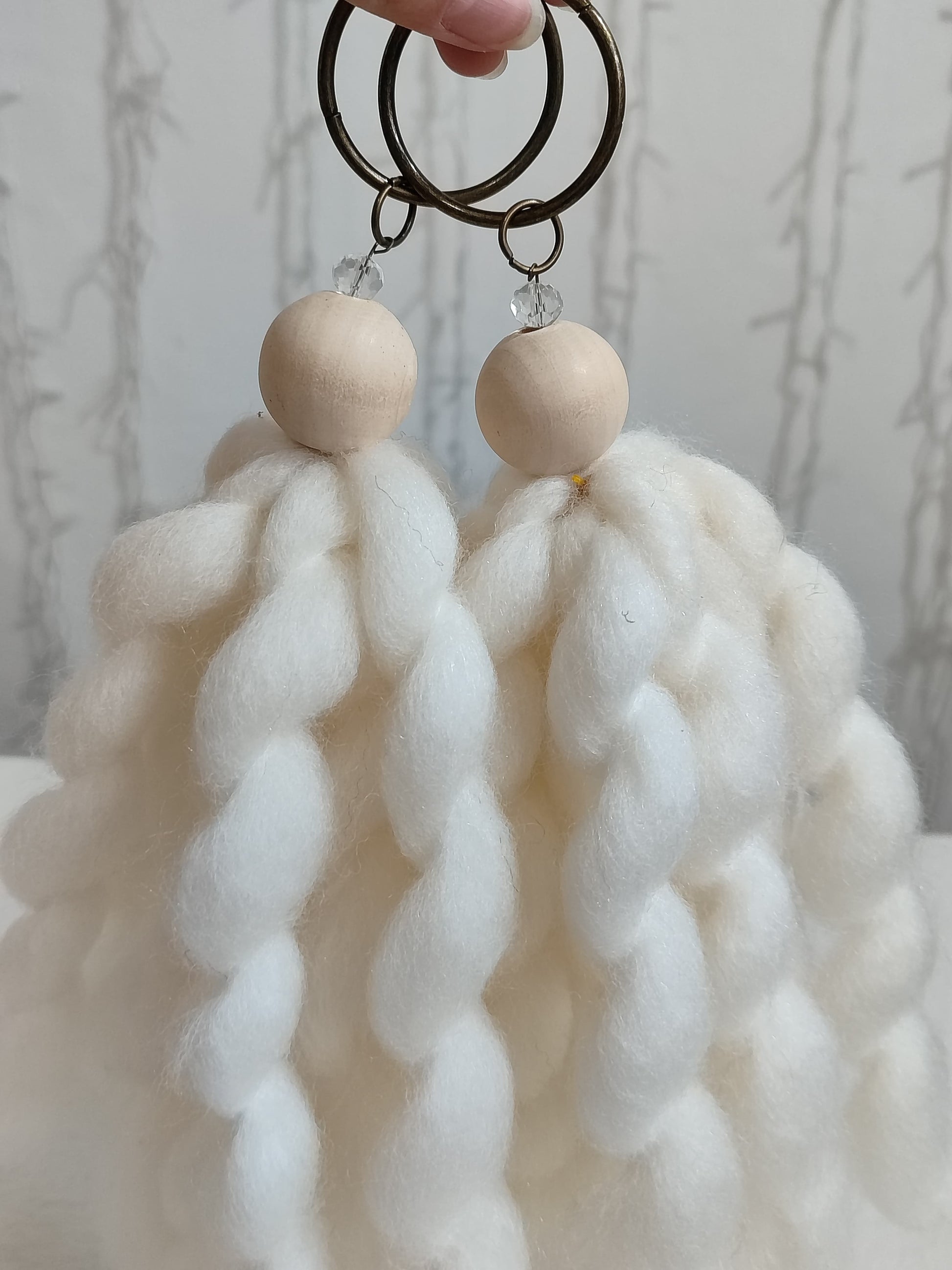 Simple y linda. Borla mullida con una esferita de madera que aporta calidez y estilo a donde la cuelgues. Ideal para puertas, llaves o muebles.