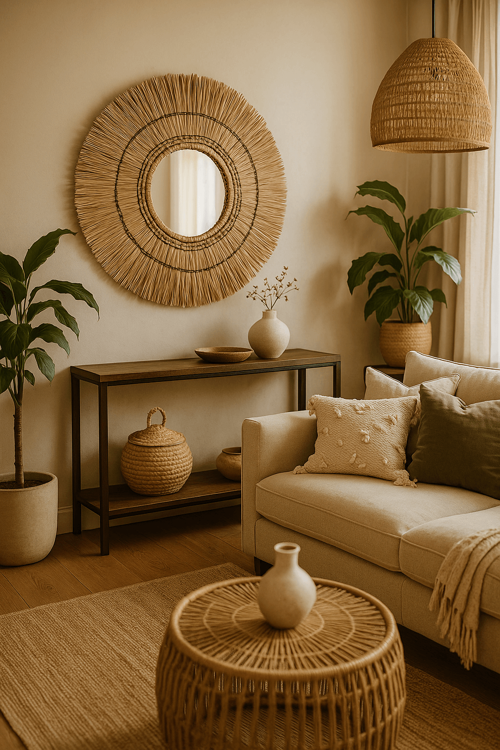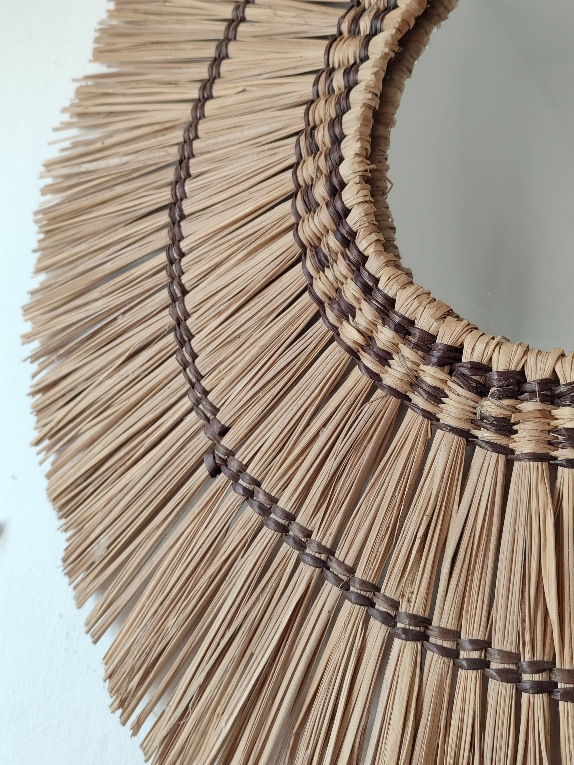 Textura y naturaleza en tu pared. Marco de carandillo con flecos uniformes y detalles tejidos en negro que le dan un toque artesanal y moderno.