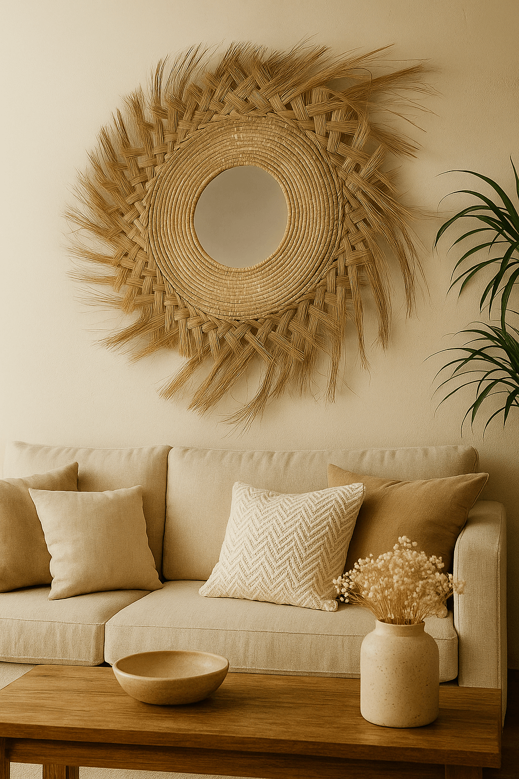 Orgánico y con mucha personalidad. Flecos irregulares y entretejidos en diagonal. Ideal para destacar cualquier ambiente generando un efecto natural.