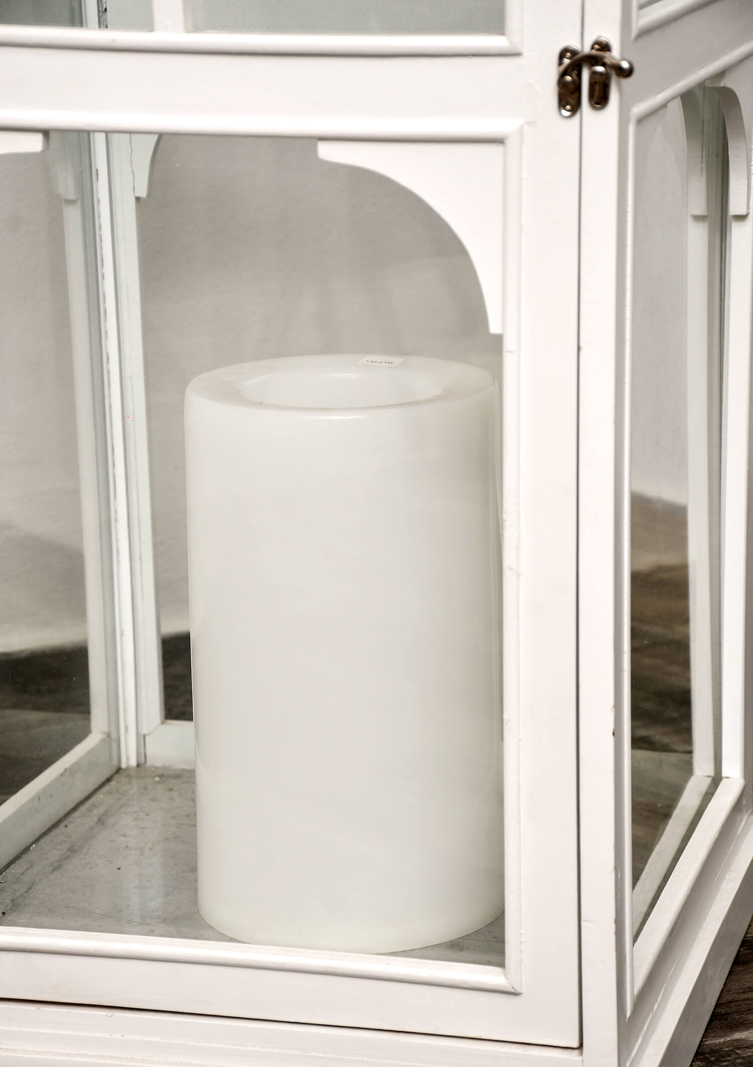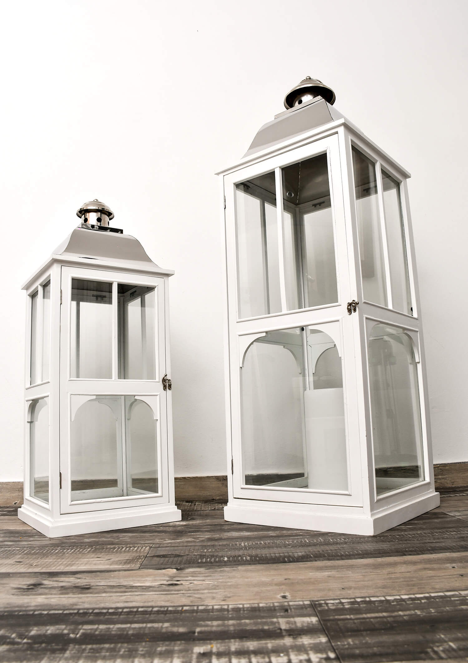 Imponente y encantador. Este farol blanco con techo de aluminio plateado transforma interiores con su presencia única.