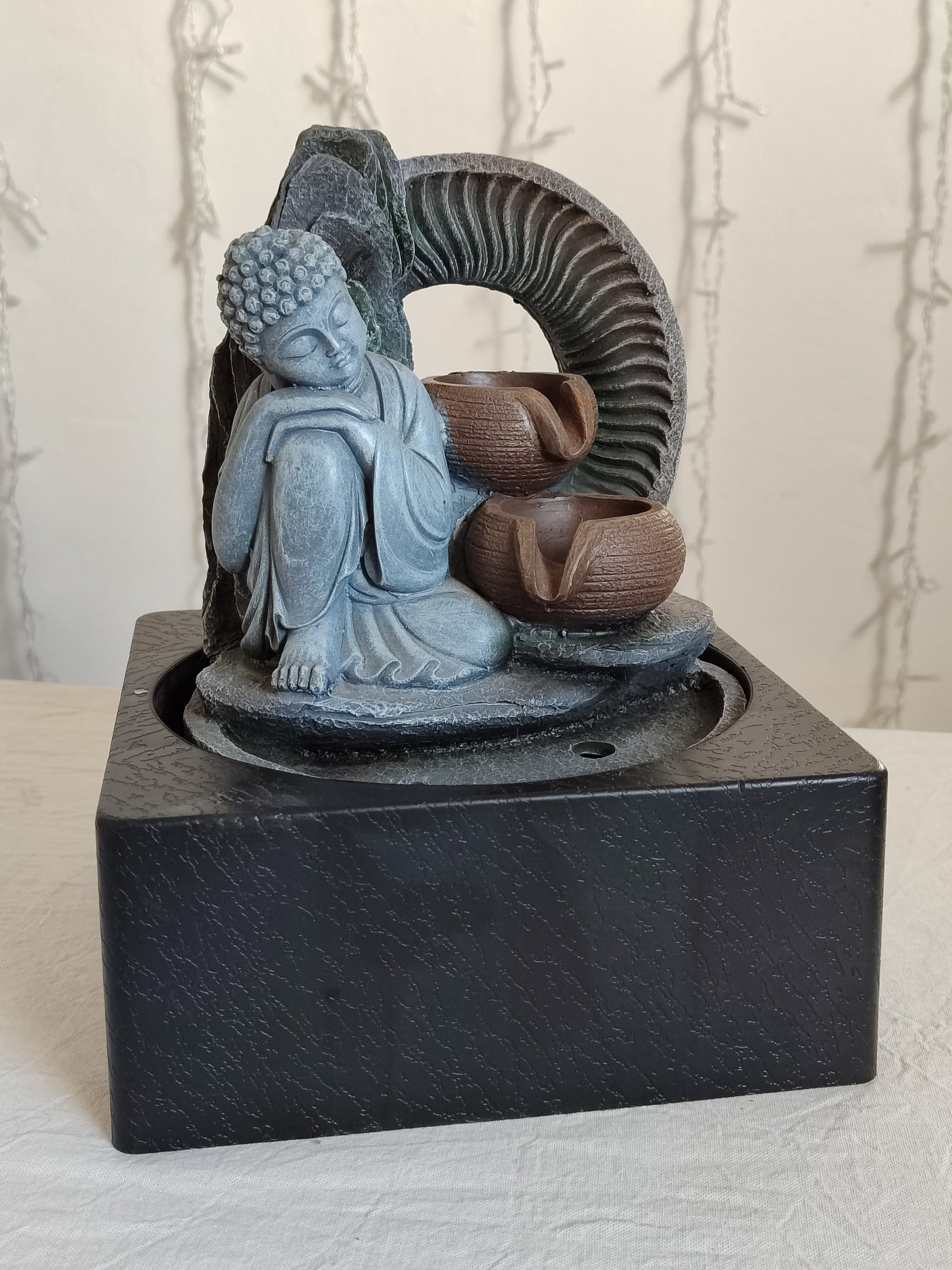 Decorativa y sobre todo relajante, con figura de buda y jarrones