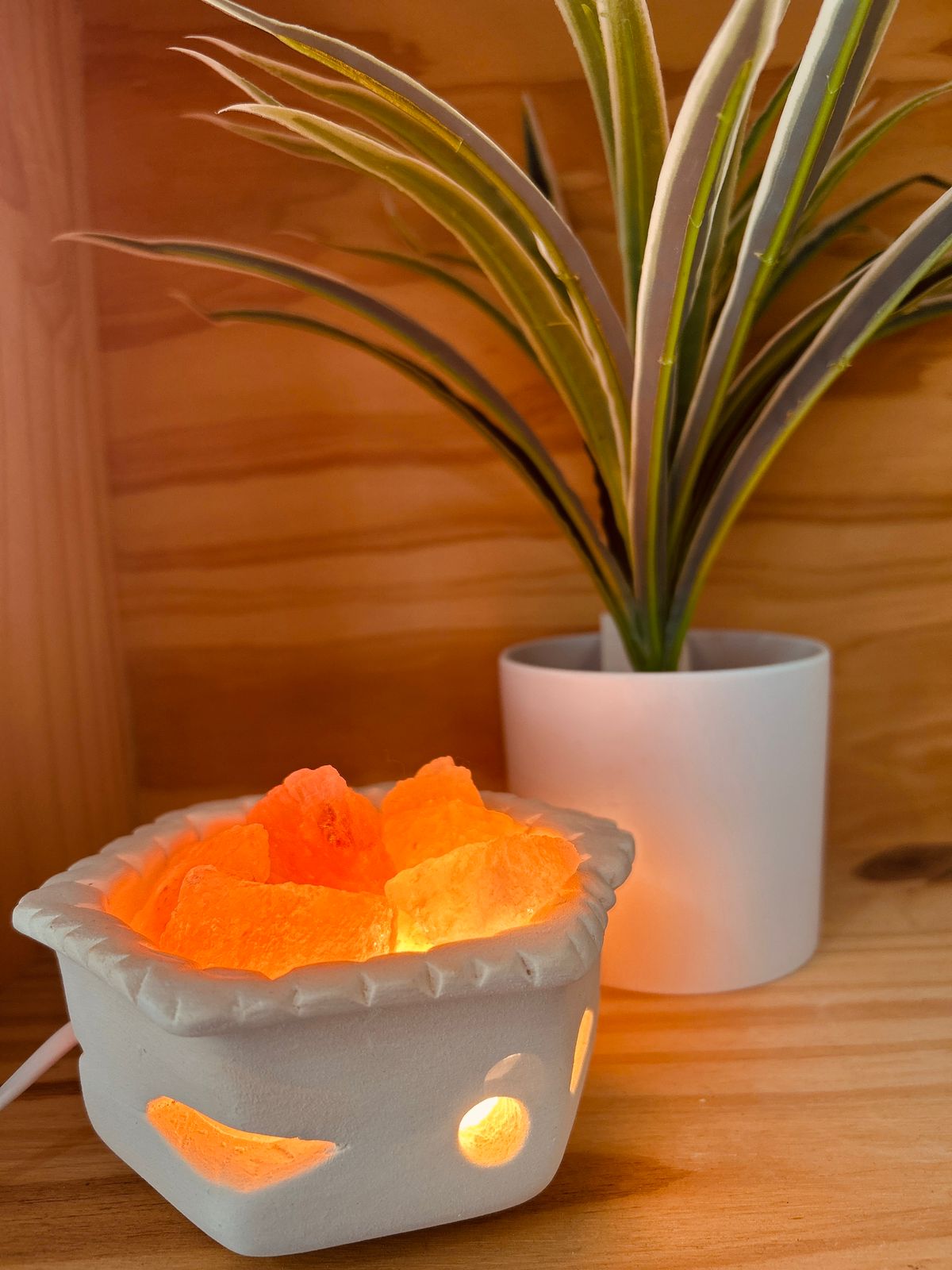 Nuestras lámparas de sal purifican el aire y crean un ambiente relajante. Cada pieza es única y tallada en sal natural del Himalaya.