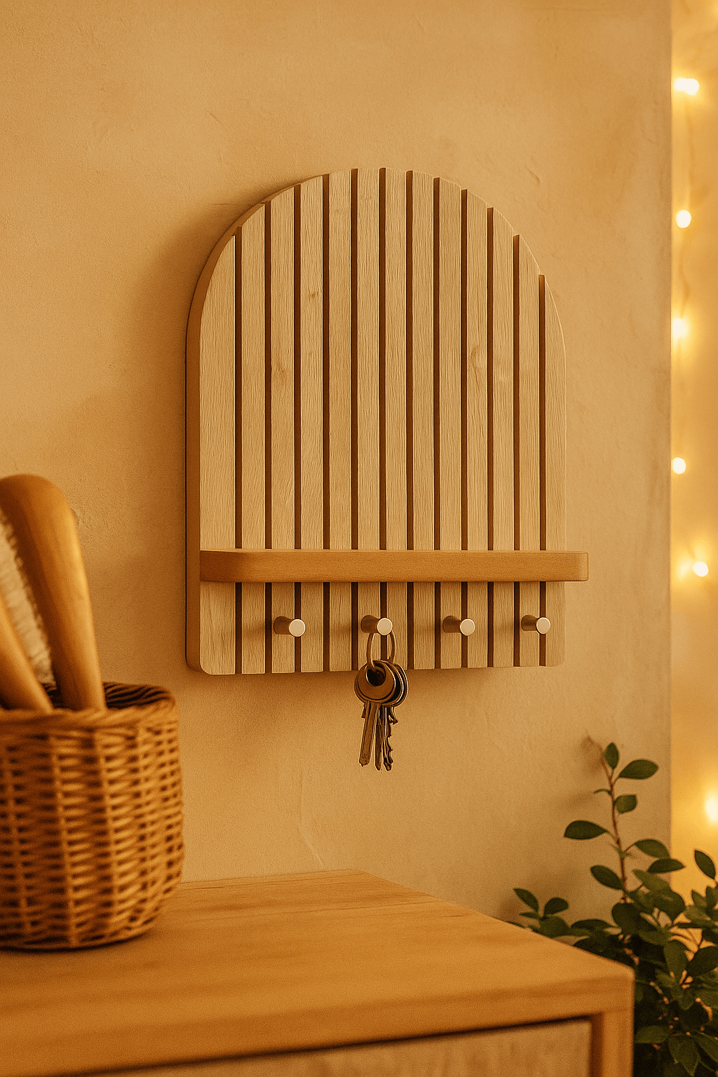 Un detalle con presencia. Diseño inspirado en formas de vitral, con estante y colgadores. Ideal para sumar deco y mantener las llaves siempre a mano.