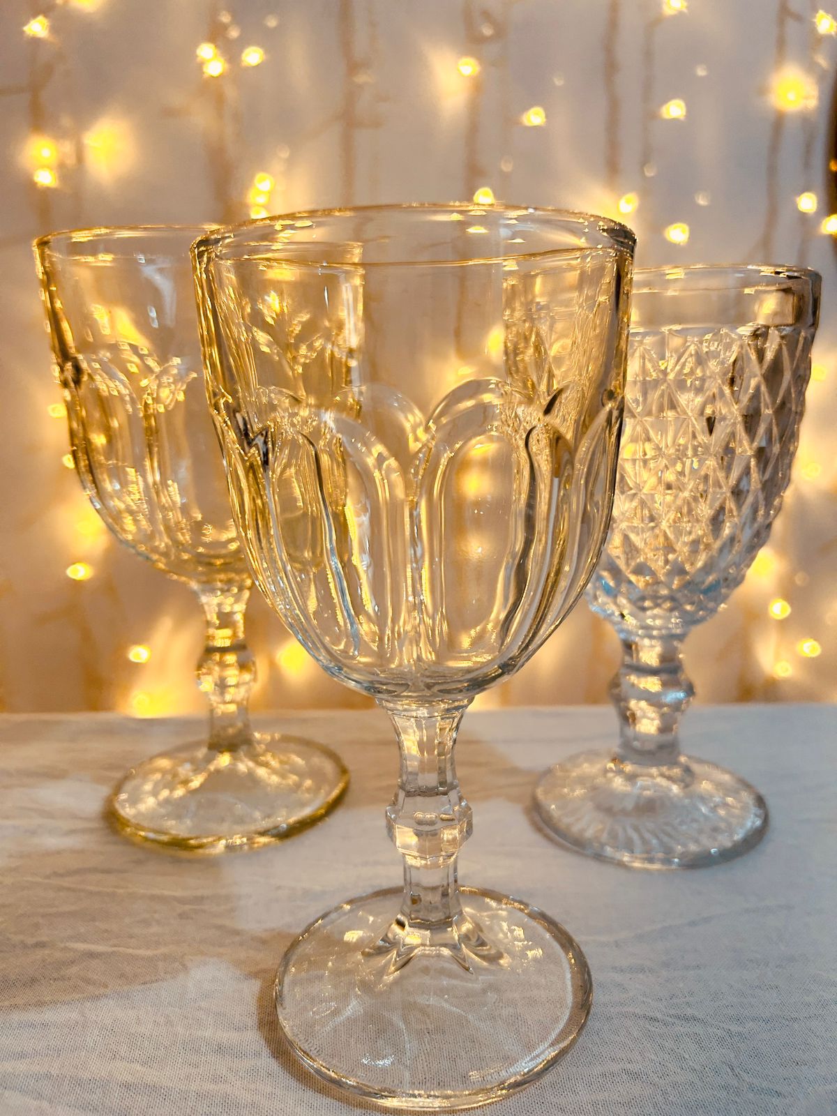 Vidrio trabajado con delicados relieves ovalados. Un modelo que suma textura y personalidad a la mesa.