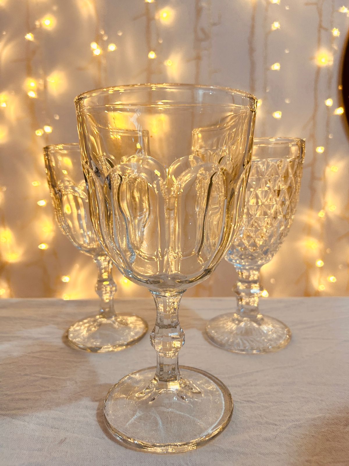Vidrio con relieves ovalados, ideal para una mesa armónica y distinguida.