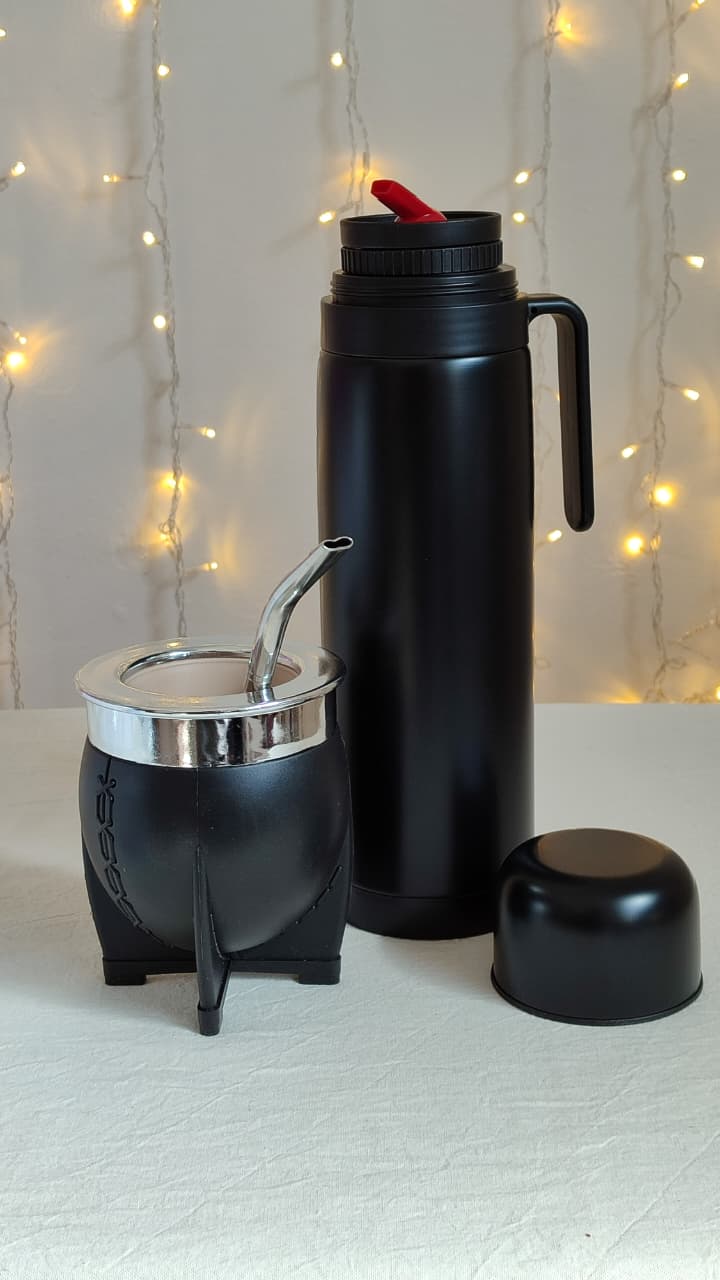 Elegante y resistente: diseño negro mate con capacidad de 1 litro, ideal para mantener tu bebida en la temperatura justa.