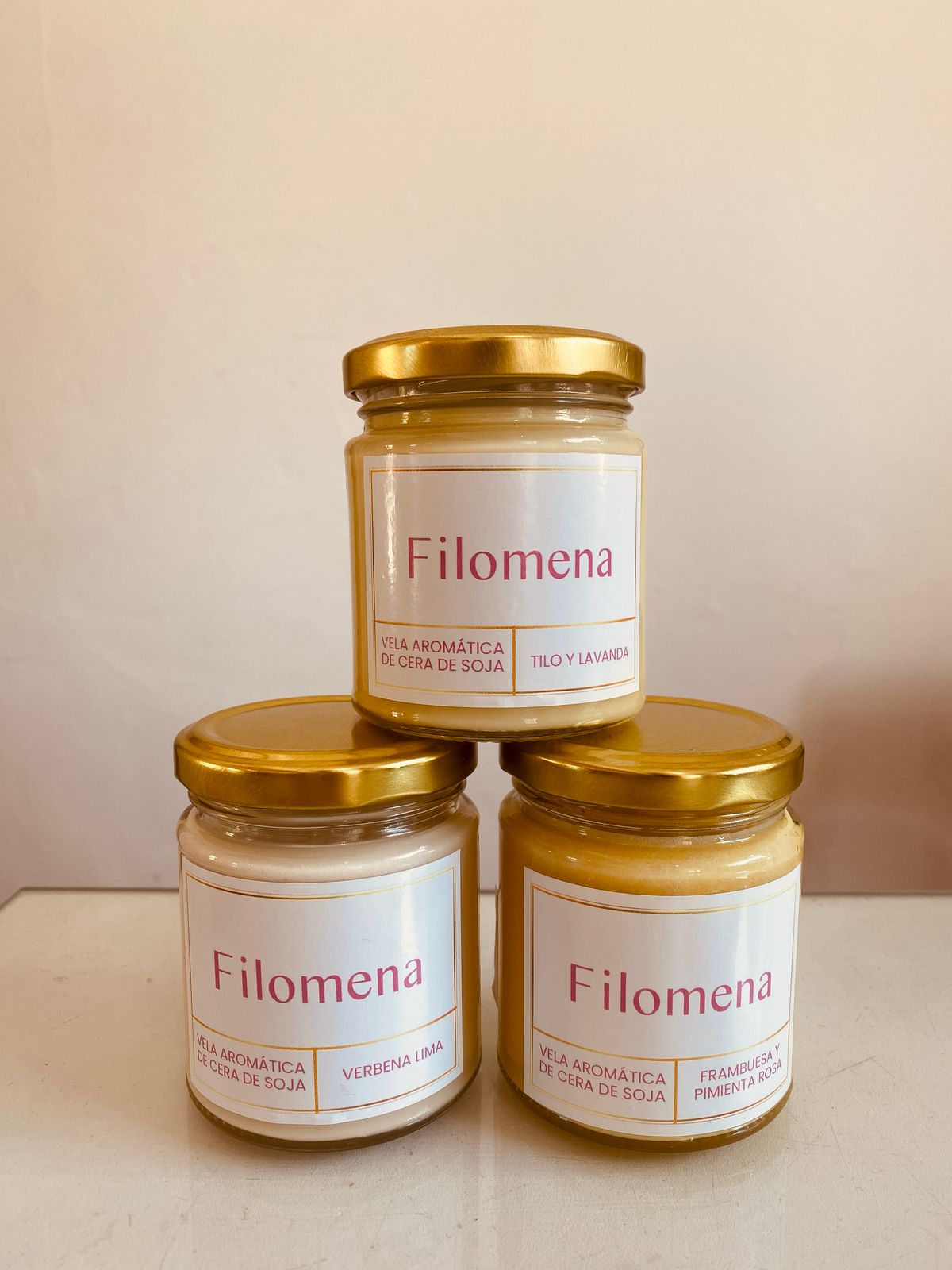 Delicadeza que perfuma. Velas de soja en frascos de vidrio con detalles dorados y rosados. Tres aromas irresistibles: